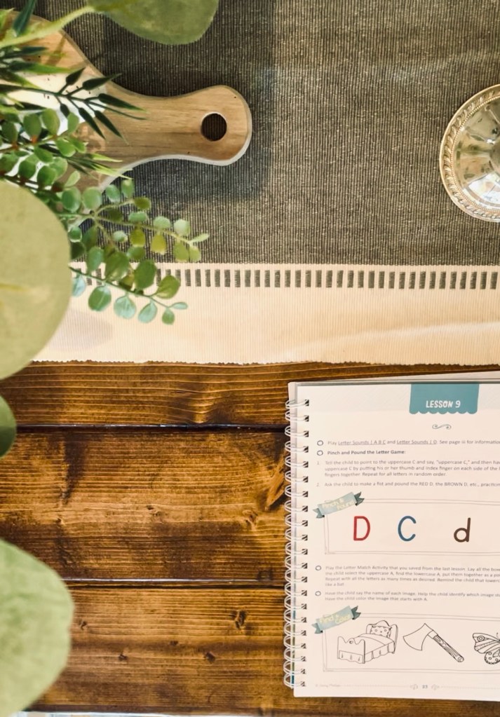 This is the core of our curriculum this year and we are both loving it so much! We finished Lesson 9 today and I am so proud of how my girl has worked her way through these lessons and has practiced her pencil grip, cutting practice, uppercase and lowercase letters, phonics, and more. I am really loving the open-and-go style of this course and I would absolutely recommend it for other homeschooling mamas of preschoolers. It really is beautiful, and it’s so easy to teach! The lessons are gently challenging, fun, and engaging, yet they are short — which helps with her attention span at this age.