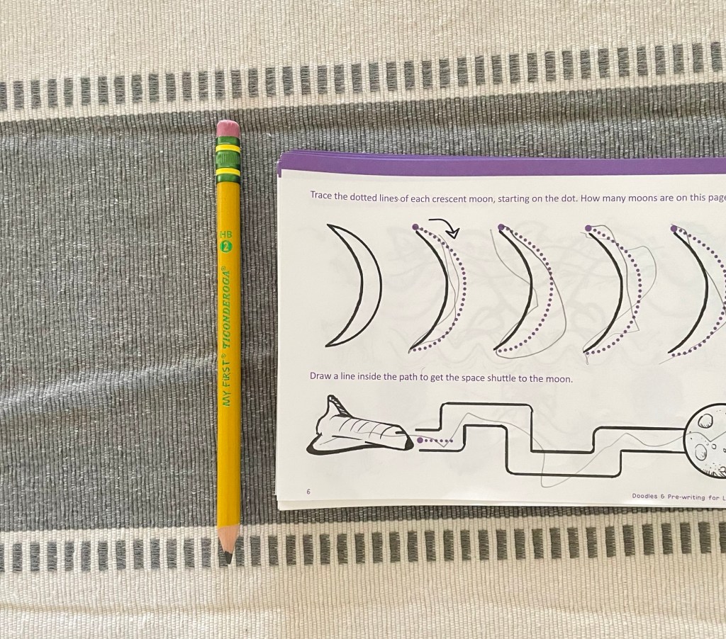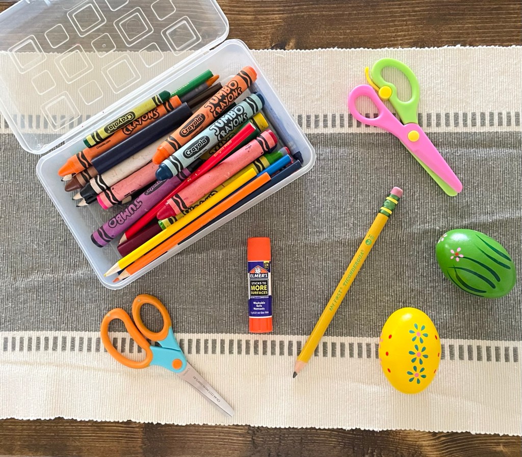 Finally, a few school supplies we have found useful are your basic colored pencils, jumbo and regular-sized crayons, My First Ticonderoga Pencils, glue sticks, and a pair of safety scissors (we started with these and have since moved on to a pair like these).